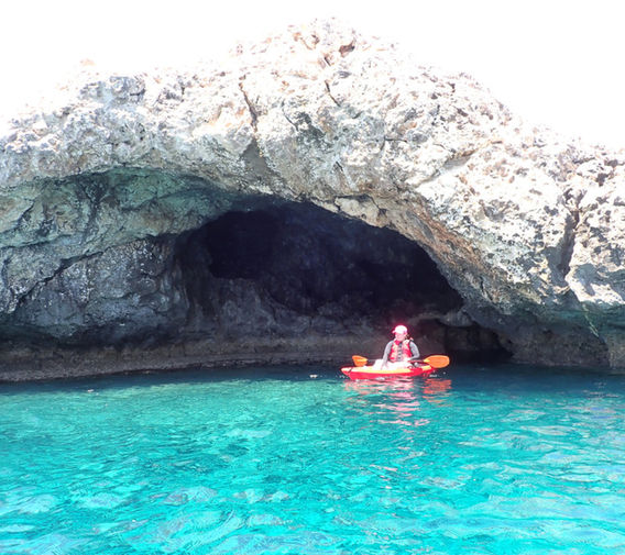 Cyprus Walks Etc offers (customised) multi-day guided kayaking programs in different regions of Cyprus (eg a program centered around Akamas and one centered around Limassol). We also offer a standard 2-day kayaking trip in the area of Ayia Napa and Cape Greko, which could easily be combined with accommodation in Ayia Napa, Protaras, Larnaca or even Nicosia (because this is where the guide lives). Because there are so many different accommodation possibilities, overnights are not part of our standard program, however we can easily add them if travellers prefer. One big difference between the kayaking trips west of Larnaca and those east of Larnaca is that as a rule, for the trips east of Larnaca we can have upto six kayakers in single recreational sitontop kayaks. For trips west of Larnaca we use sea touring (sitinside) kayaks and we can only take upto two kayakers per trip (however even in trips to the west of Larnaca, we could arrange to split the itineraries so that more people do shorter routes).